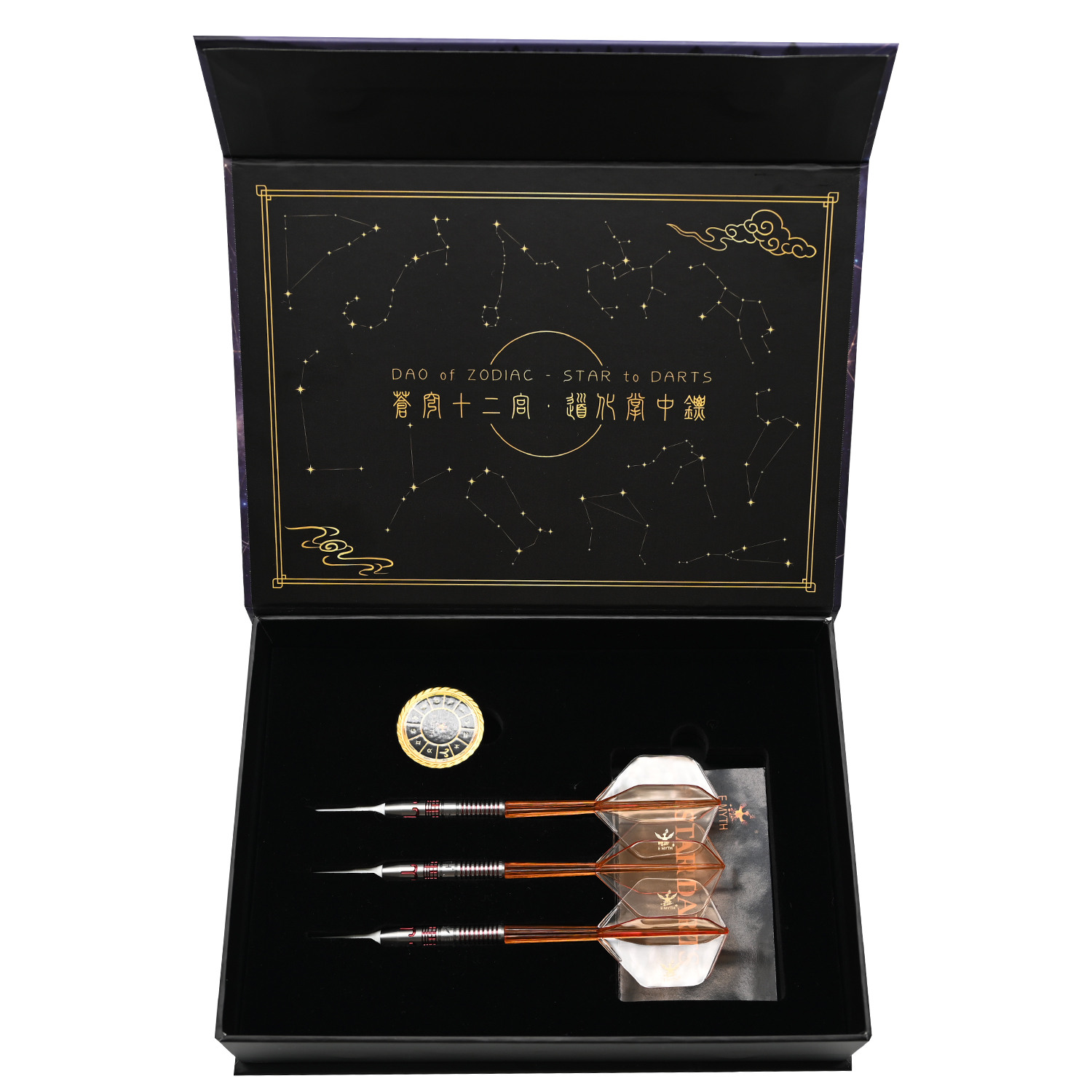 E MYTH Ling · Aries is inspired by the mythic Golden Ram of Aries, drawing on the Taoist philosophy of “the first stir of yang energy”. It symbolizes courage, determination, and unyielding spirit, empowering you to dominate the dartboard with fiery confidence and unrivaled precision. Designed exclusively by E MYTH, this dart is crafted for bold, pioneering players.